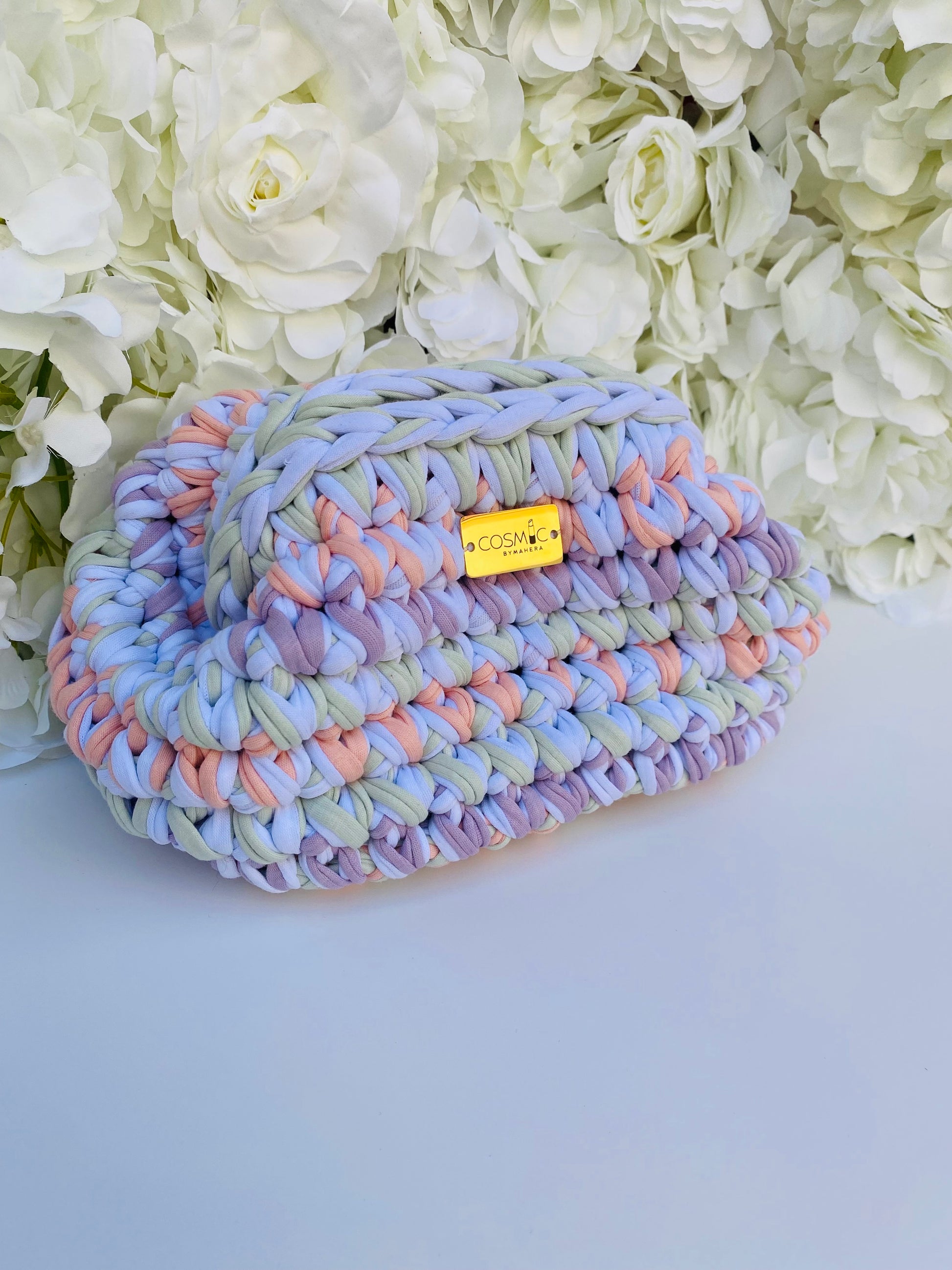 Le Clutch Bali, un sac crocheté fait main, idéal pour vos essentiels d'été avec style et légèreté.